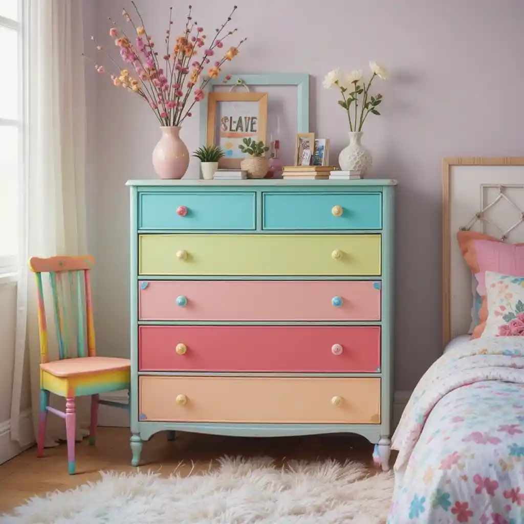 Revamp your old dresser or chair with different rainbow colors for each drawer or leg. It’s quirky, fun, and completely unique.