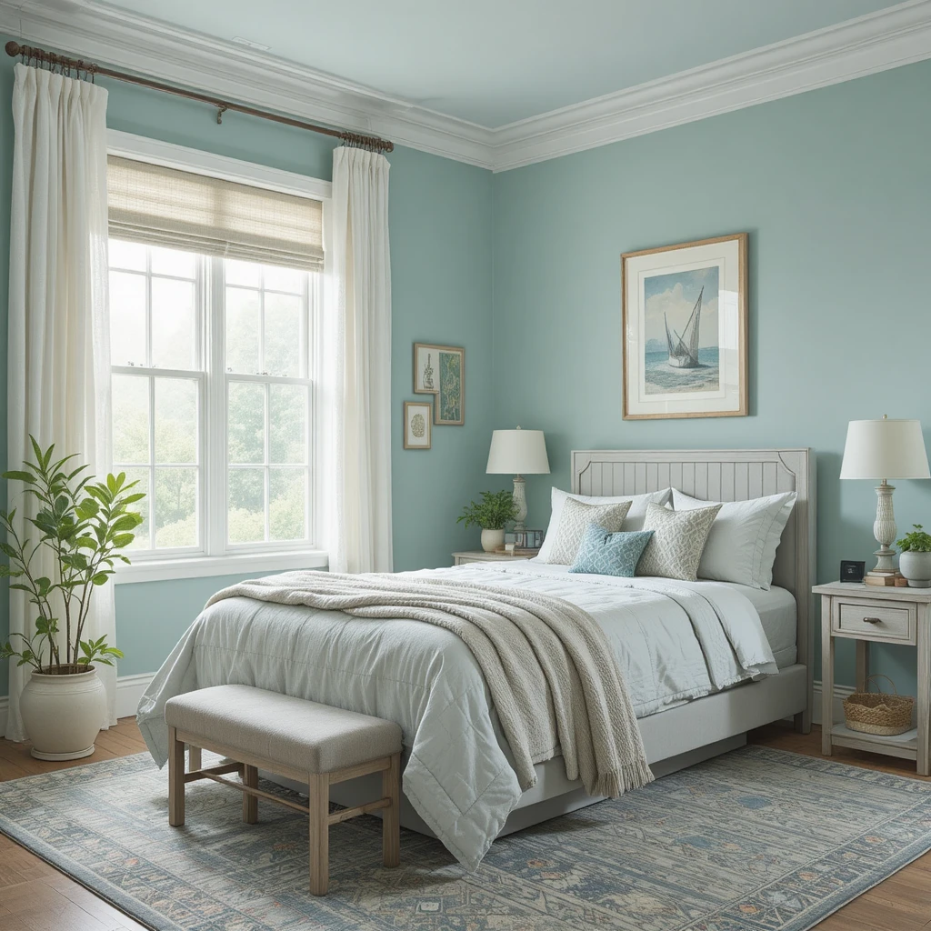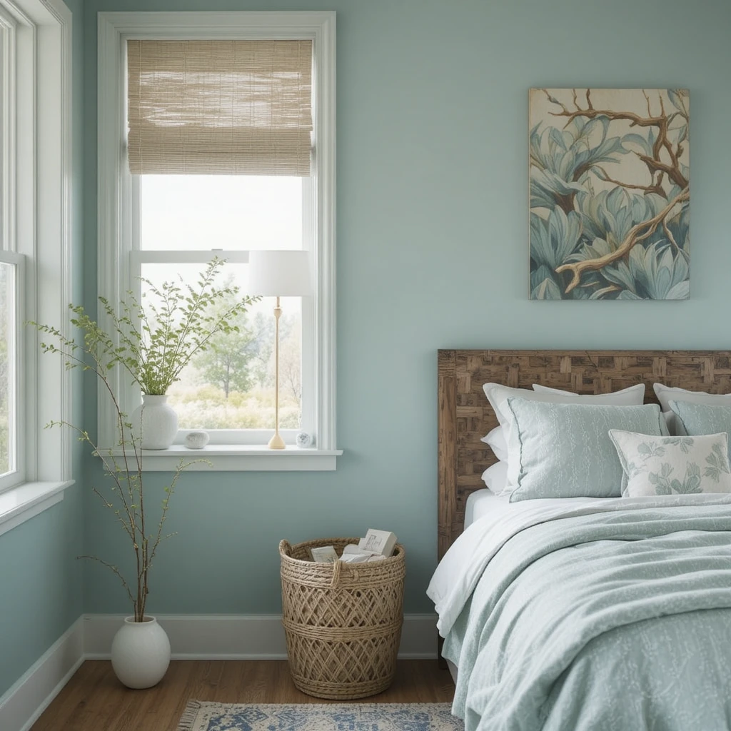 Gentle green-blue perfect for hallways or accent spaces. Evokes coastal calm and serenity.