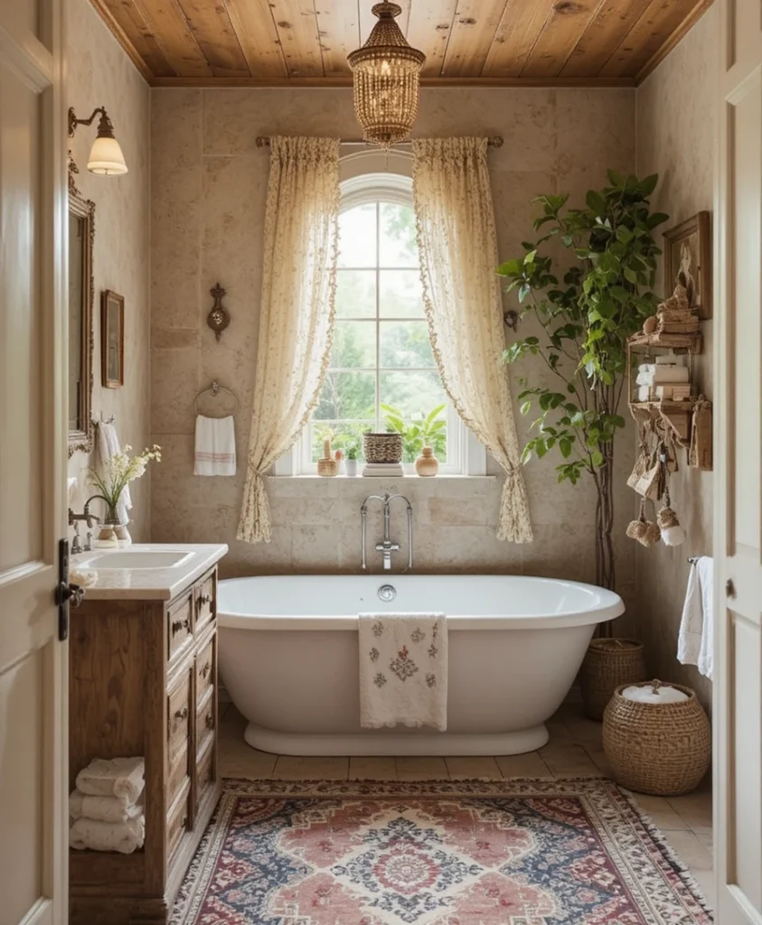Boho bathrooms are all about freedom, creativity, and cozy charm. Mixing natural textures, warm tones, and eclectic accents, this style feels effortlessly chic and inviting.