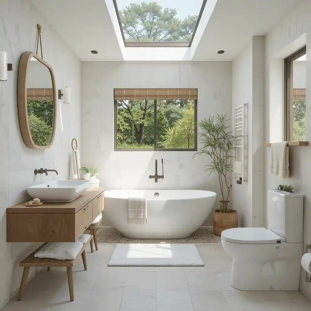 Install a skylight to flood the bathroom with sunlight, reducing the need for artificial light and connecting you to the outdoors.