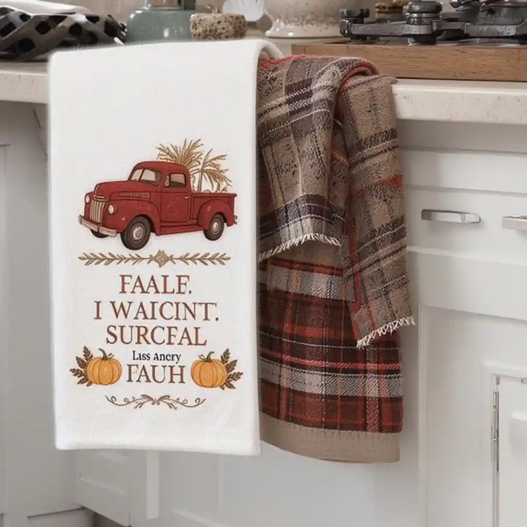 Fall-themed towels with a classic red truck hauling pumpkins or hay are trendy and nostalgic. These work great in farmhouse or vintage-inspired kitchens. Cozy Fall Kitchen Towels