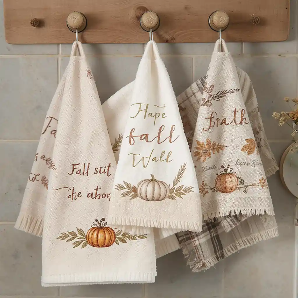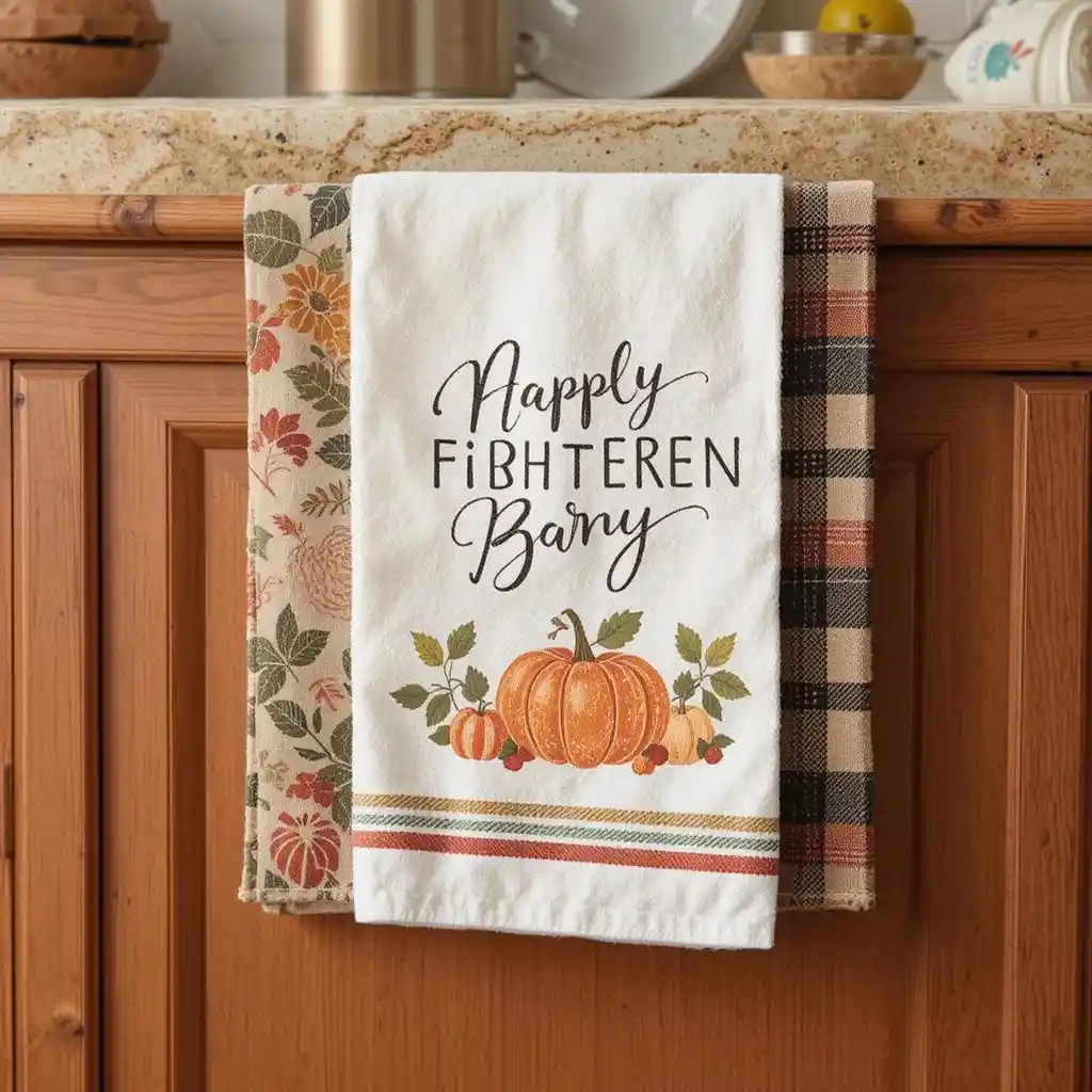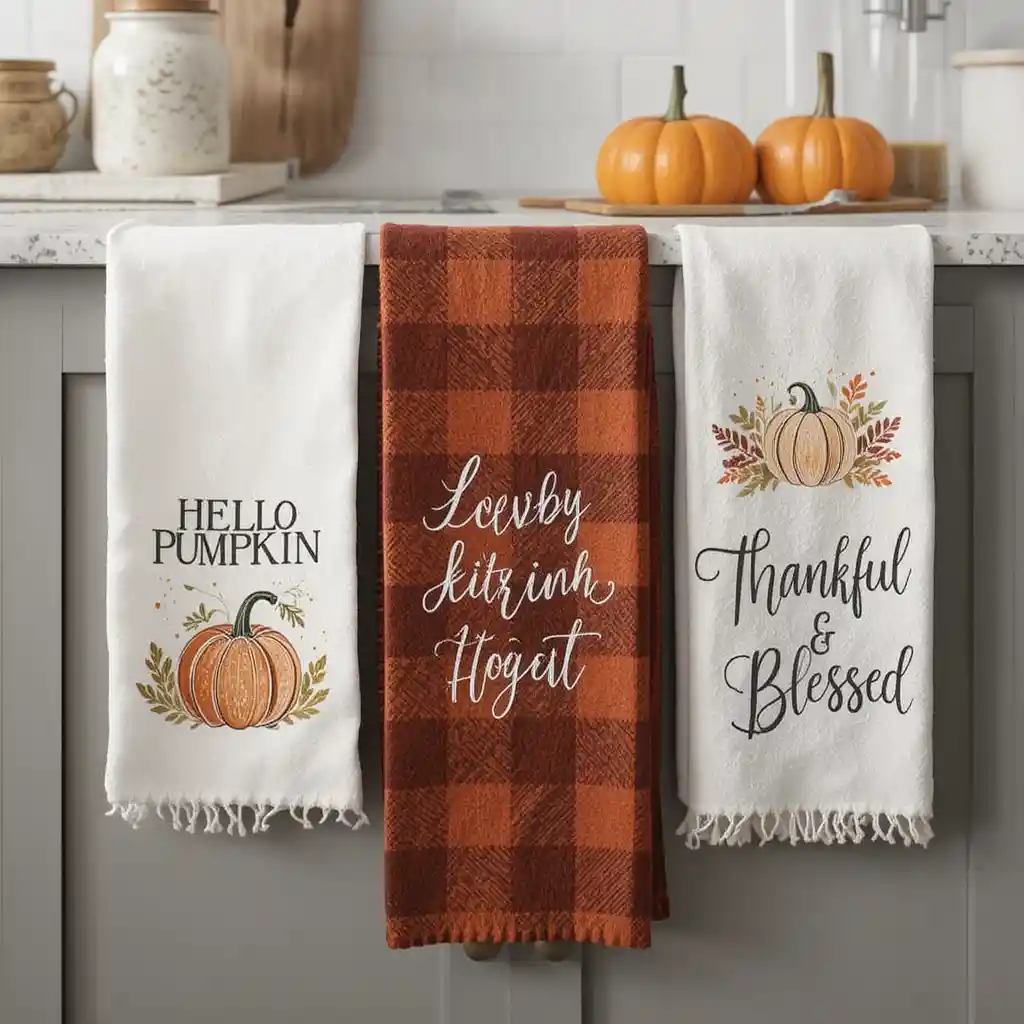 Look for towels that feature phrases like “Hello Pumpkin,” “Gather Together,” or “Thankful & Blessed.” These add a personal and inviting touch to your kitchen.