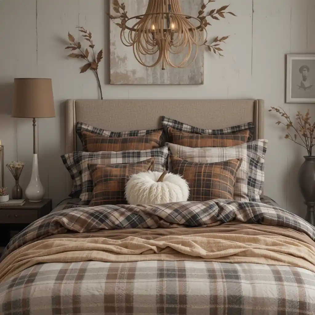 Switch out your throw pillows with plaid or tartan patterns in fall shades to give your bed or seating area a touch of classic fall flair.