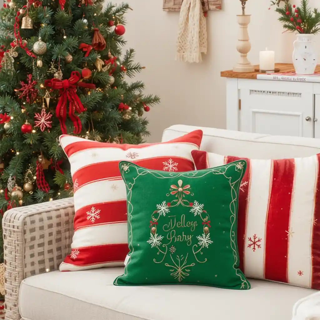 Quilted cushions with festive stitching add elegance and coziness. They’re great for layering on sofas or guest beds. Christmas Cushion Ideas