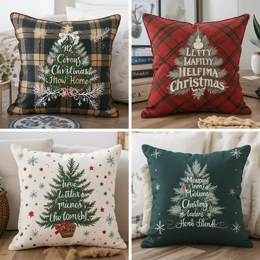 Cushions with holiday quotes like “Merry Christmas” or “Let It Snow” spread positivity and seasonal charm. Christmas Cushion Ideas