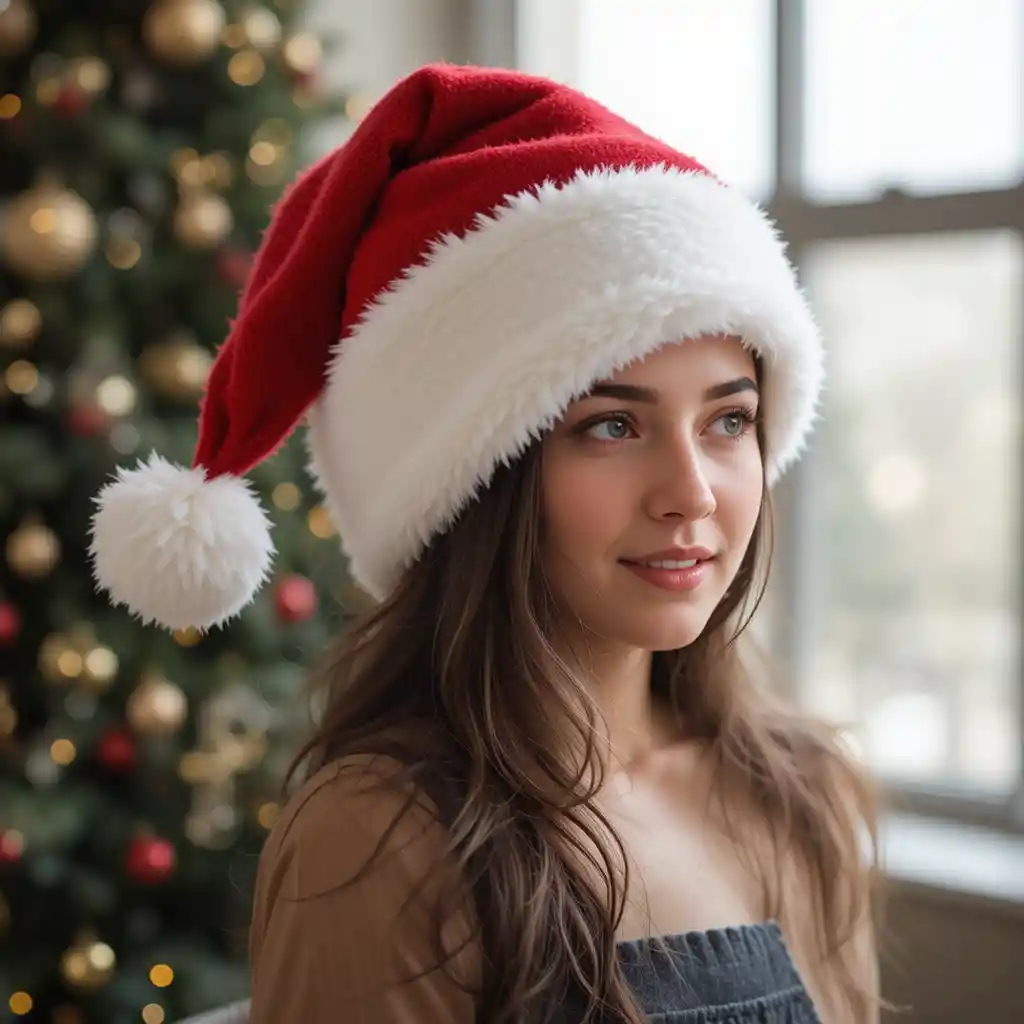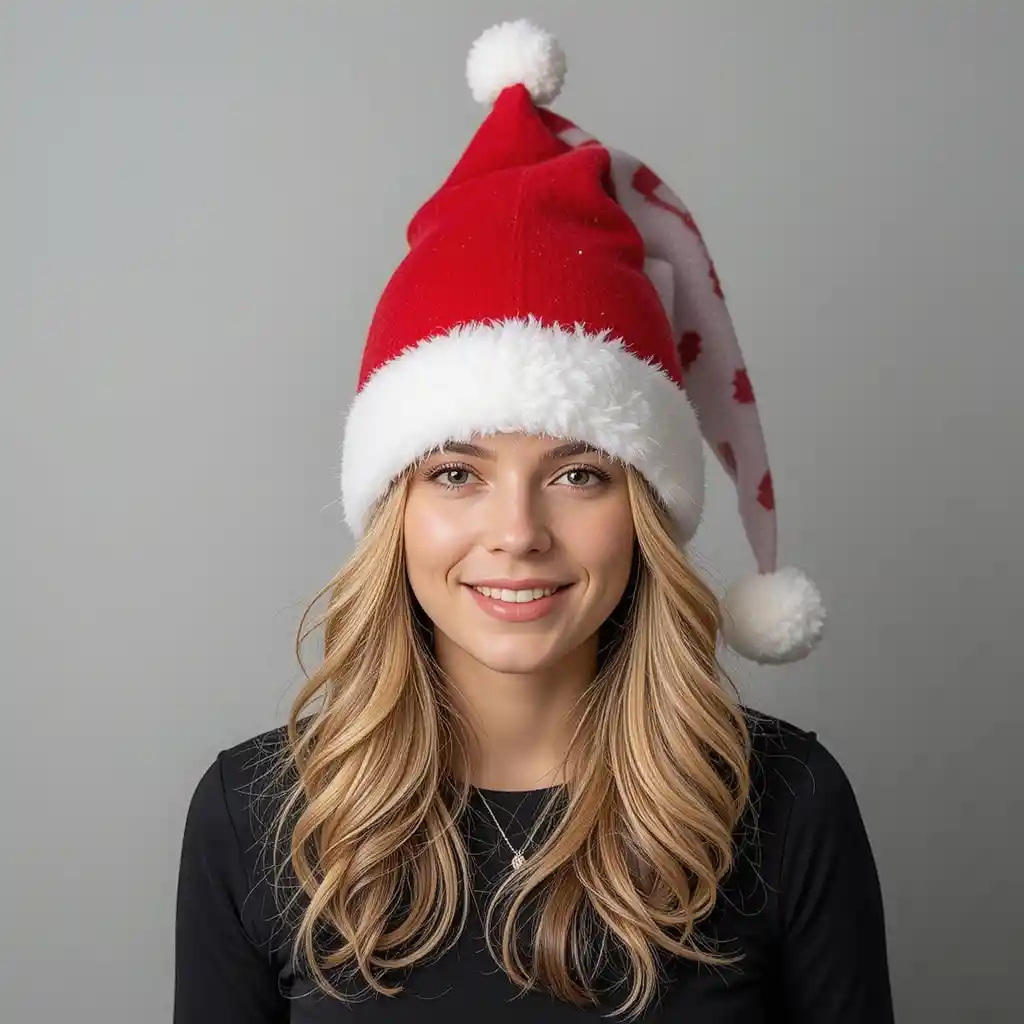 The iconic red Santa hat with a fluffy white pom is always a holiday favorite. It brings instant cheer and matches almost every Christmas outfit effortlessly.