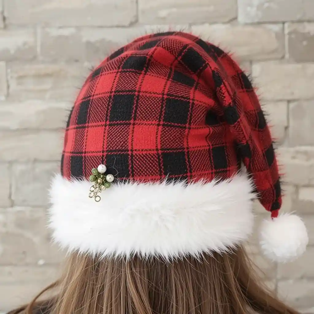A plaid-patterned hat gives a rustic holiday vibe. It pairs beautifully with cozy flannel shirts and Christmas sweaters.