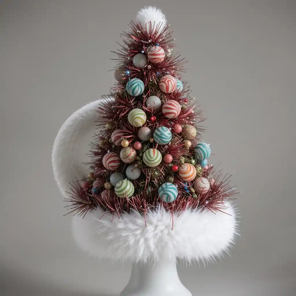 Wrap your hat in tinsel and candy-inspired accents for a whimsical holiday vibe. It’s cheerful and easy DIY. Christmas Hat Ideas