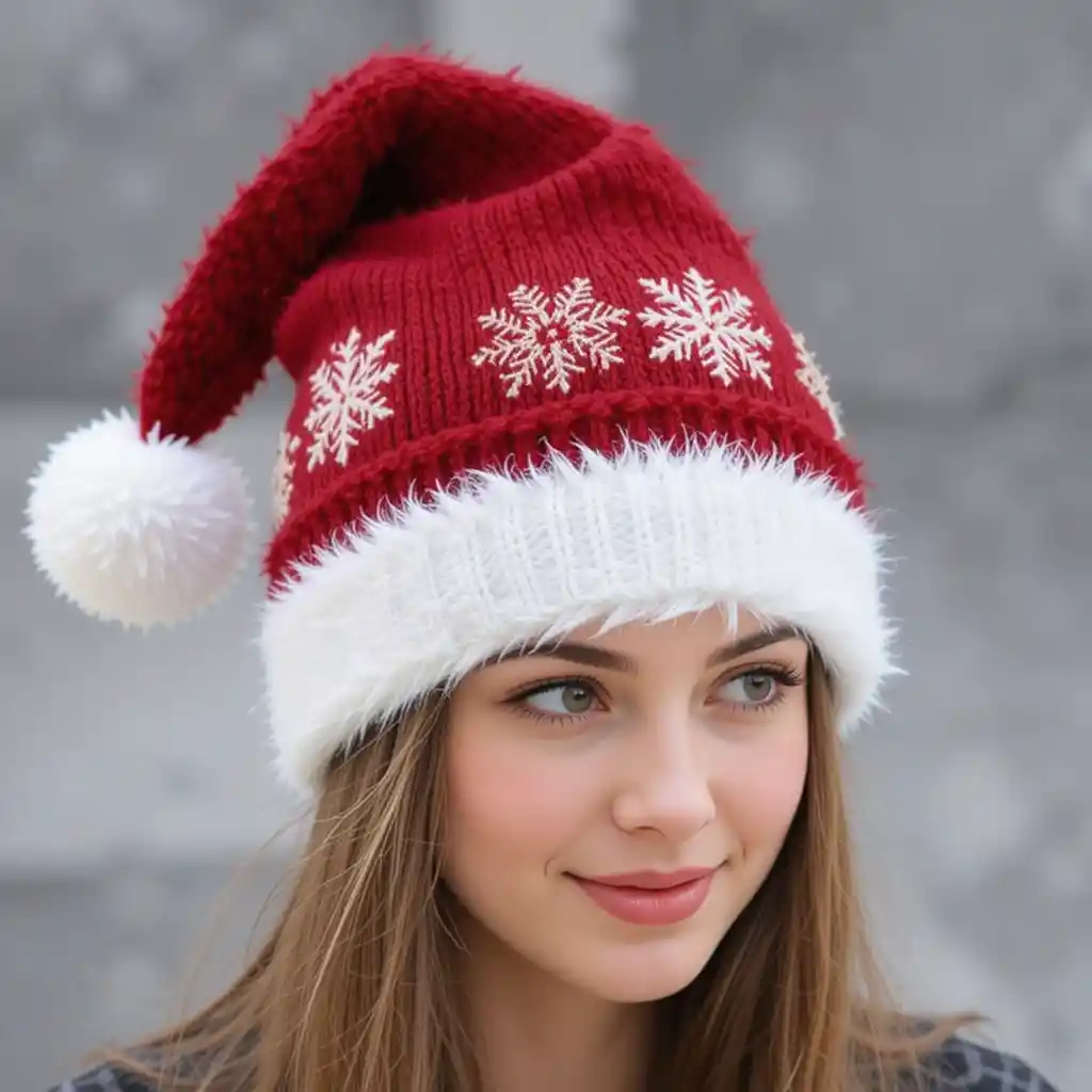 Stay warm and festive with a knit hat decorated with snowflake designs. It’s cozy yet perfectly holiday-themed. Christmas Hat Ideas