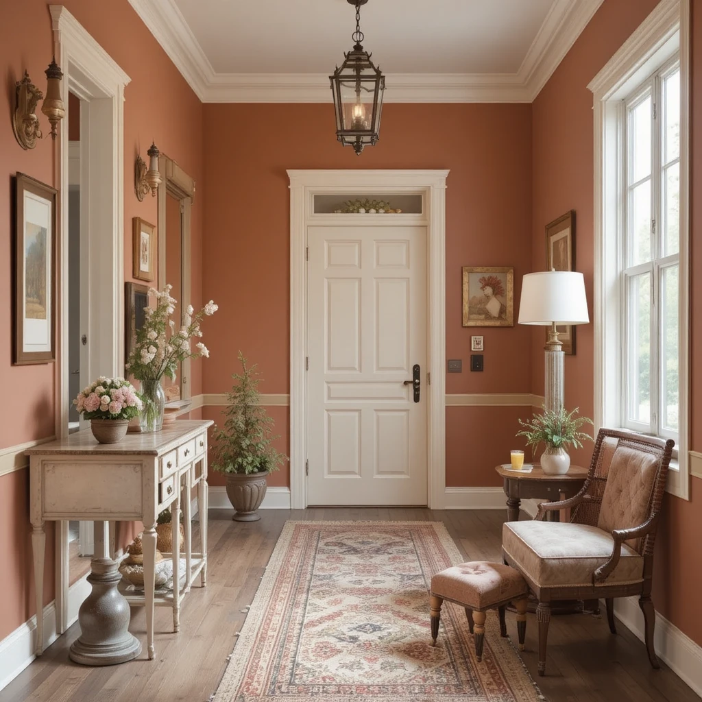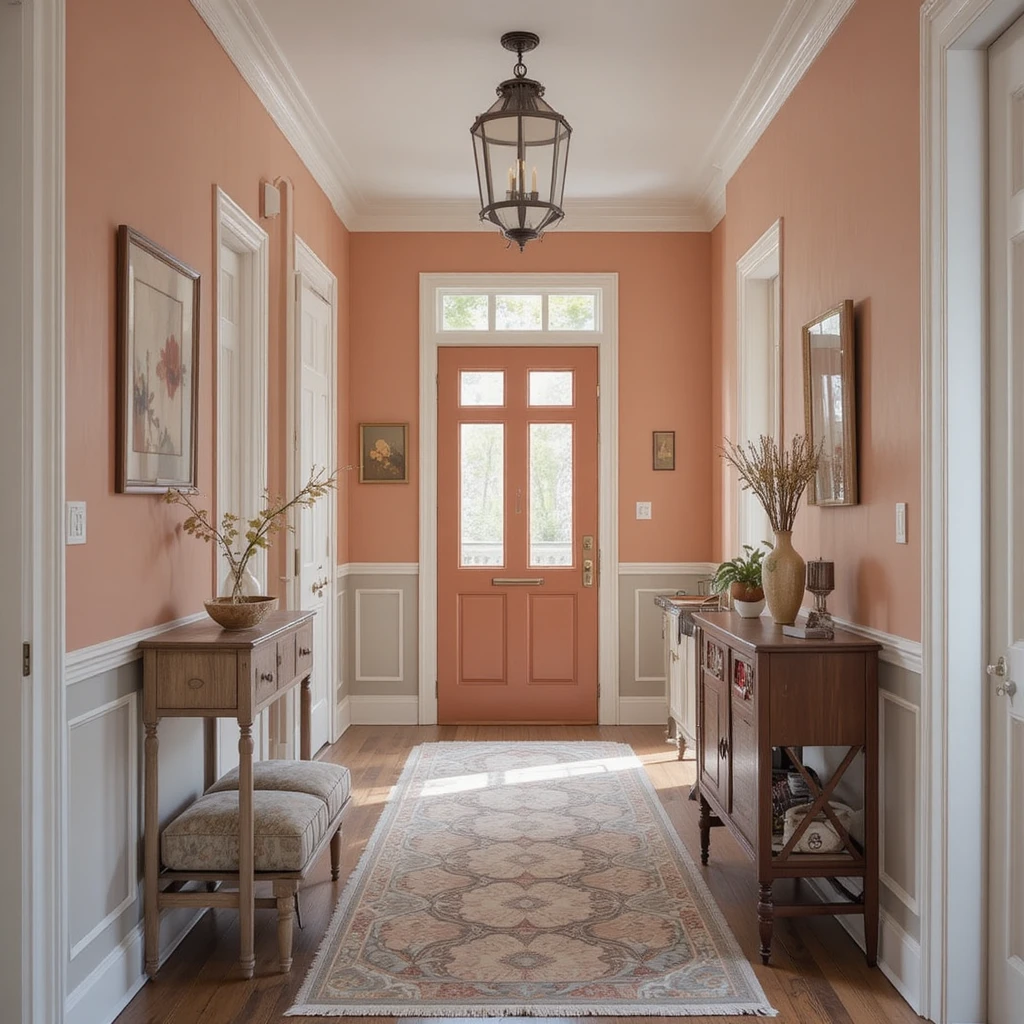 Soft coral tone ideal for hallways or entryways. Adds gentle energy and charm.