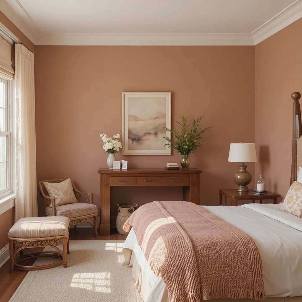 Warm maple-brown perfect for bedrooms. Creates cozy and inviting interiors. Warm Paint Colors