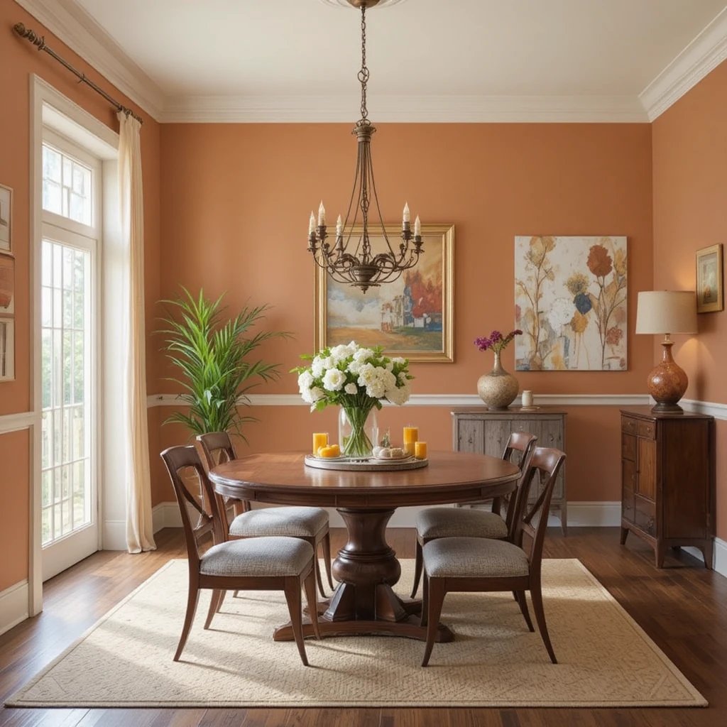 Rich terracotta tone perfect for dining rooms. Adds earthy charm and cozy elegance.