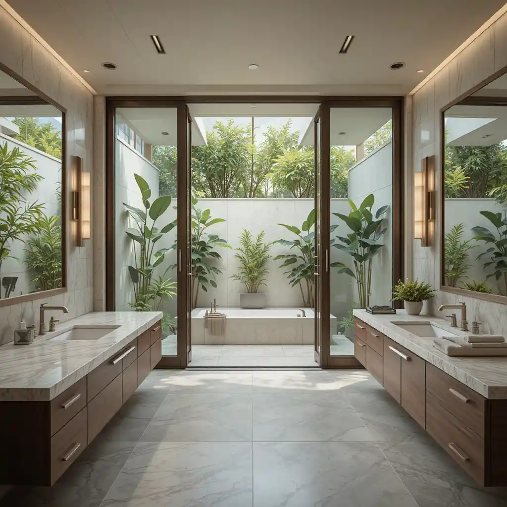 If you live in a warm climate, create an indoor-outdoor bathroom with sliding doors leading to a private courtyard or garden shower.
