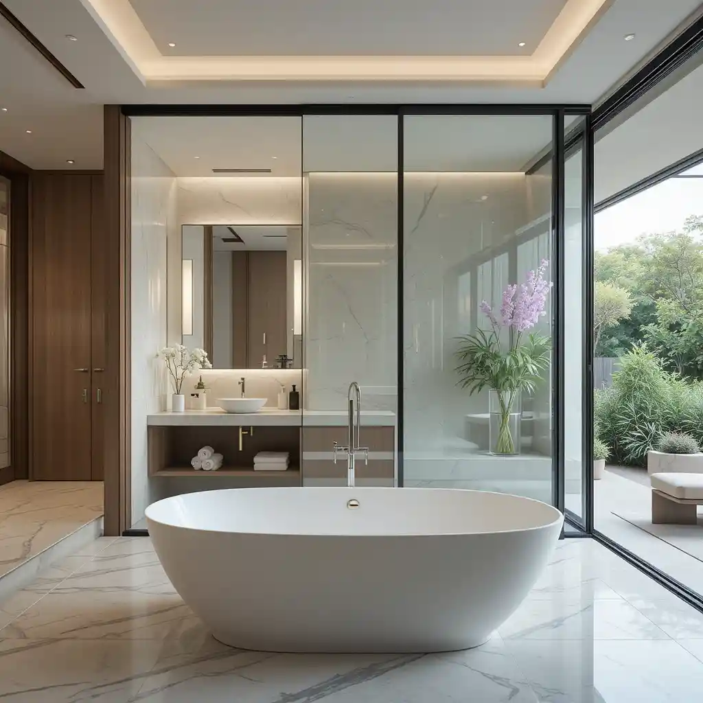 Use clear or frosted glass panels instead of traditional walls to section off the bathroom area without closing it in. It’s great for maintaining light and space. Open Concept Bathroom IdeasÂ