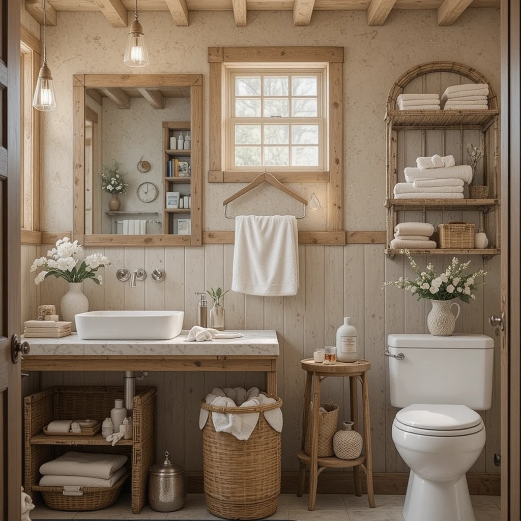 Use woven baskets for storing towels and toiletries. The natural material adds warmth while keeping your bathroom organized and clutter-free.