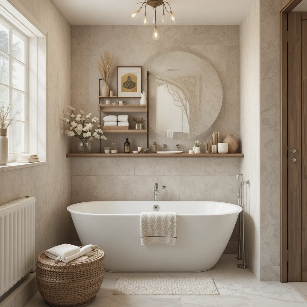 Paint your walls in warm neutrals like beige, cream, or soft taupe. These shades reflect light beautifully and make the space feel larger and cozier at the same time. Cozy Bathroom Decor
