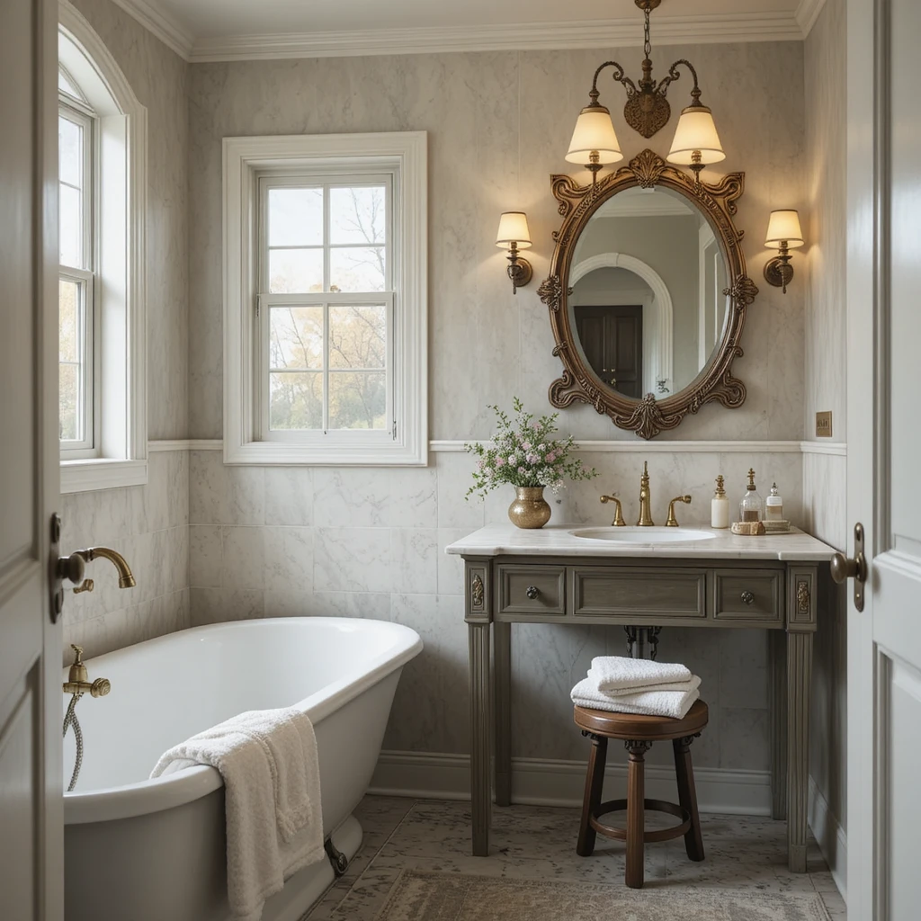 Add a vintage mirror, antique stool, or brass faucet for nostalgic charm. Mixing old-world elements with modern comfort creates a cozy, timeless look.