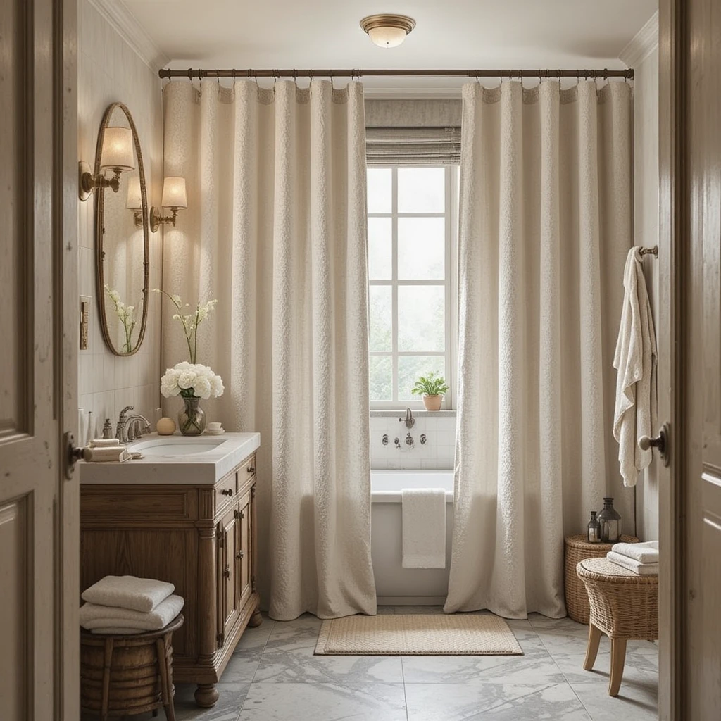 Switch out plain shower curtains for linen or waffle-textured fabric ones. Textures create warmth and elevate the look of your entire bathroom instantly.