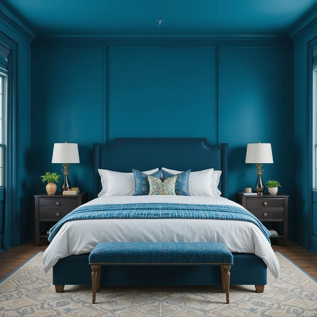 Peacock blue paint colors bring boldness, elegance, and timeless sophistication to interiors. Perfect for accent walls, bedrooms, living rooms, and offices, these shades create stylish, luxurious spaces that make a statement.