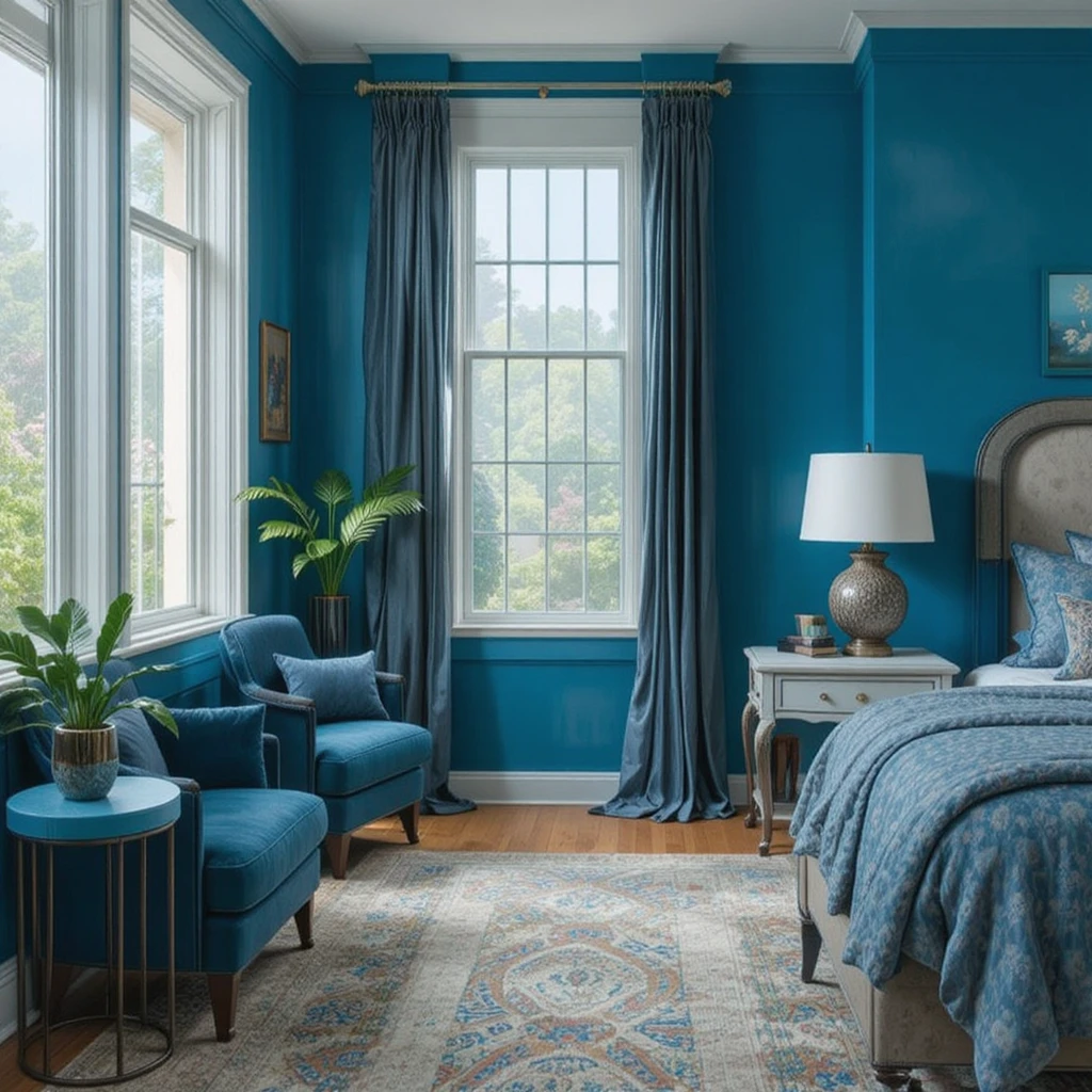 From deep jewel tones to vibrant teal-infused blues, these shades bring sophistication, energy, and character to living rooms, bedrooms, offices, and accent walls.