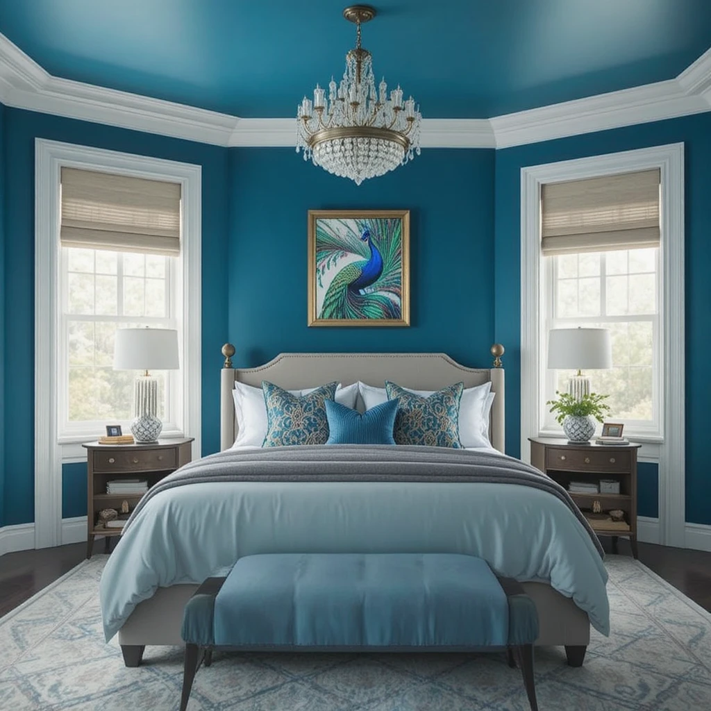 Peacock blue paint colors are rich, luxurious, and perfect for creating bold, stylish interiors.