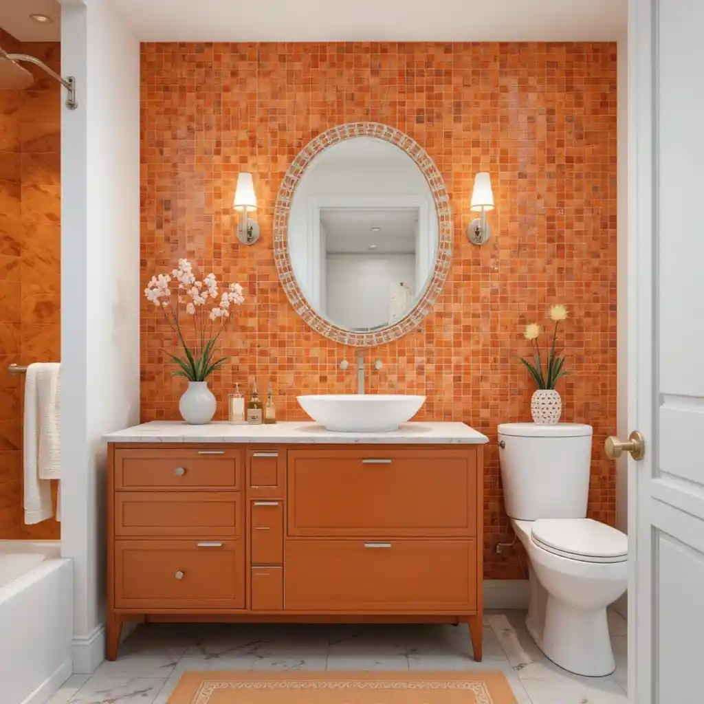 Install a mosaic tile backsplash in varying orange tones behind your vanity or sink. This adds texture and creates a bold, artistic look.
