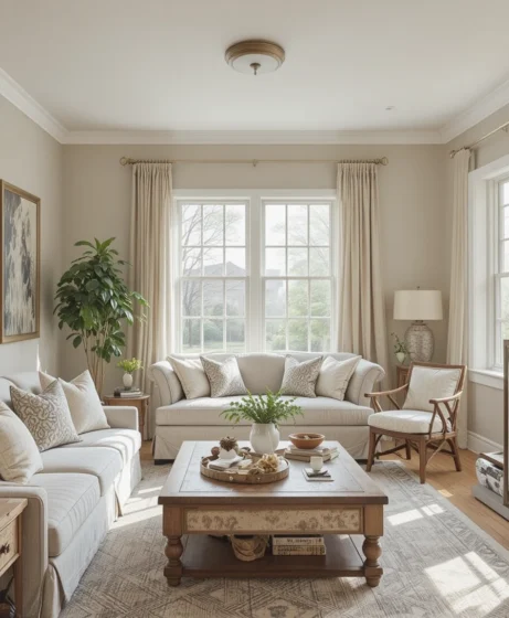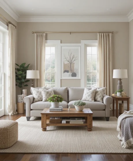 Using Accessible Beige Sherwin Williams as a base allows you to layer different textures like rugs, cushions, and curtains. This creates depth without adding bold colors, keeping the look simple yet stylish.