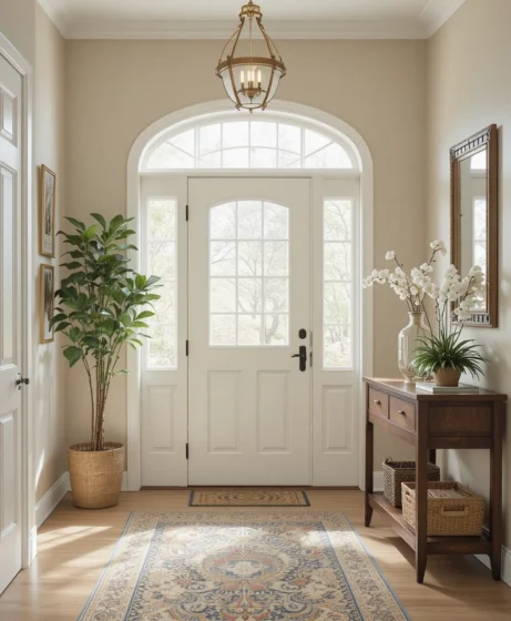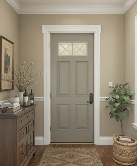 Entryways with Accessible Beige Sherwin Williams look clean and welcoming. The neutral tone reflects light gently, making the space feel open while still adding warmth to your home’s first impression.