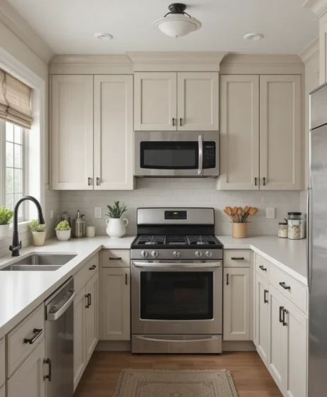 Painting cabinets with Accessible Beige Sherwin Williams gives kitchens a timeless and clean look. It pairs well with white countertops, black hardware, or natural wood finishes, making the space feel both modern and inviting.