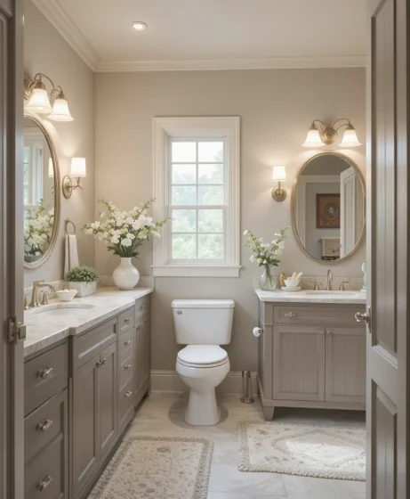 Bathrooms benefit from the soft warmth of Accessible Beige Sherwin Williams. It keeps the space bright while adding a touch of comfort. Combine it with mirrors, light fixtures, and simple decor for a fresh and relaxing feel.