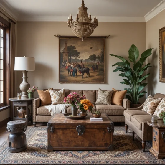 Incorporate vintage trunks, carved stools, or antique decor. These elements add personality and a sense of history.