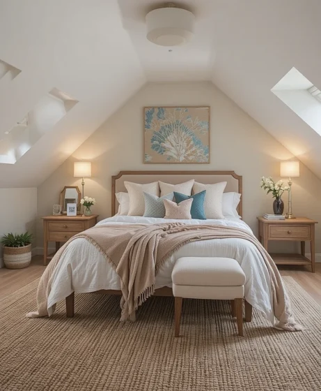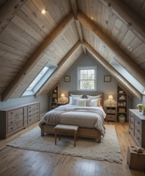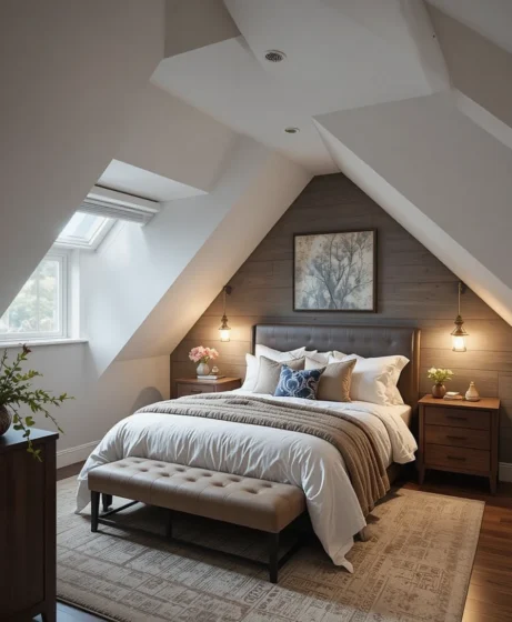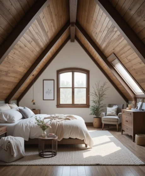 Combining soft textiles with rustic wood creates a welcoming look. This style balances comfort and charm. It fits perfectly in converted attic spaces.