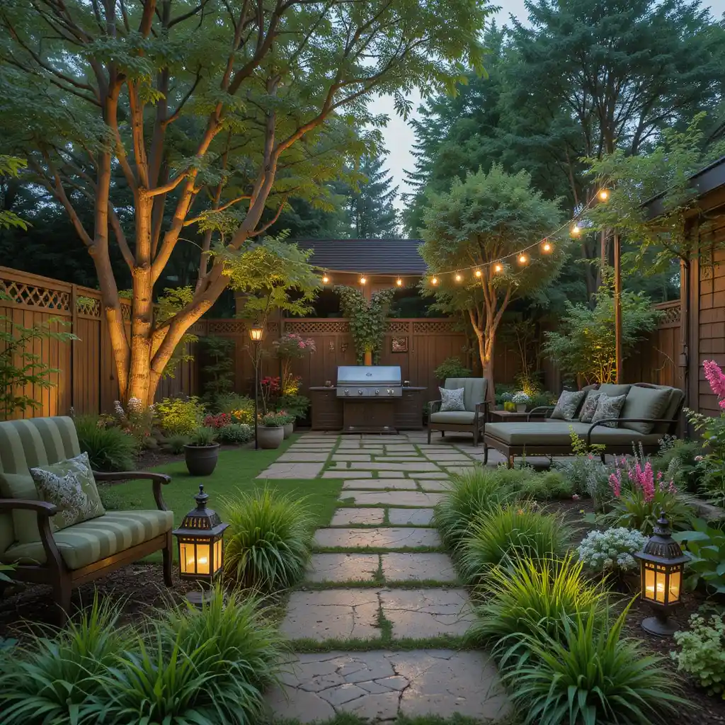 Install pathway lights, lanterns, or string lighting to enhance safety and create a cozy atmosphere after sunset.
