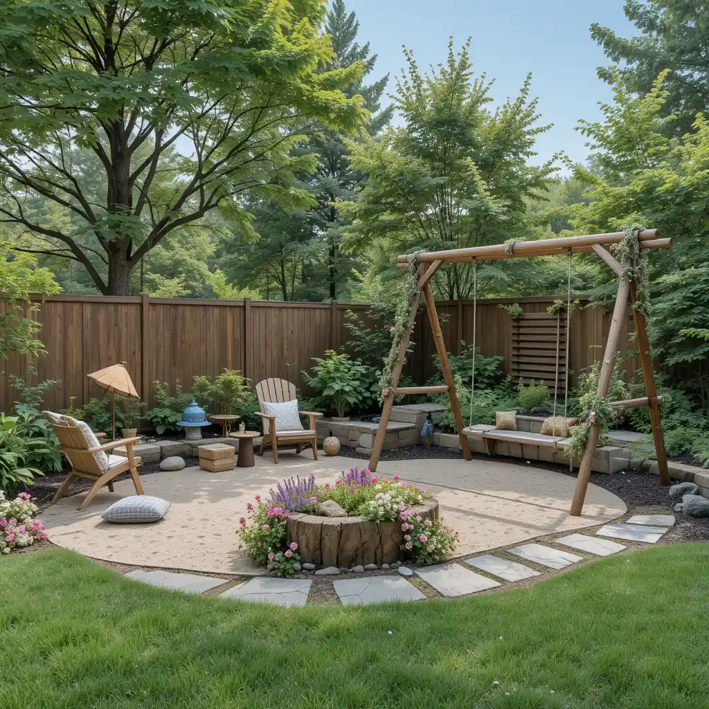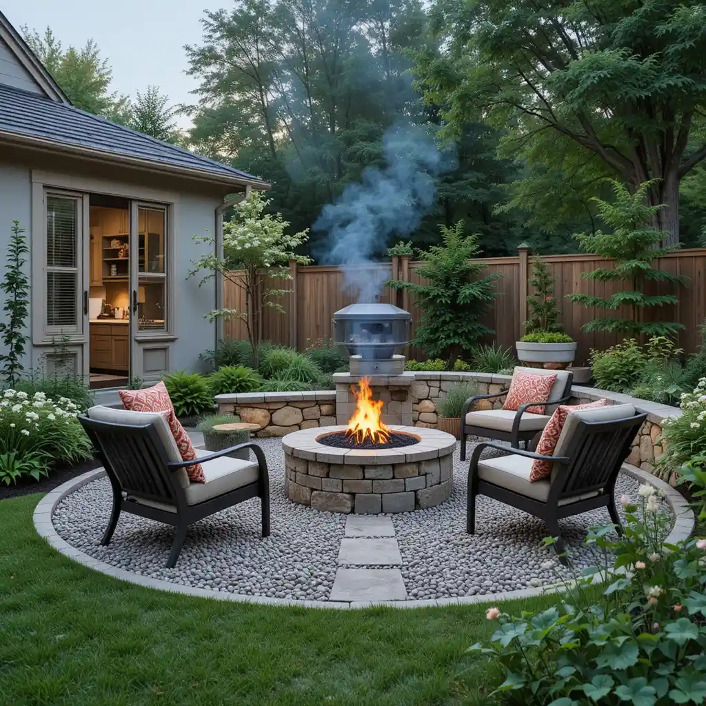 Build a fire pit surrounded by gravel or stone and add weather-resistant seating. A fire feature adds warmth, ambiance, and year-round entertainment to your backyard.