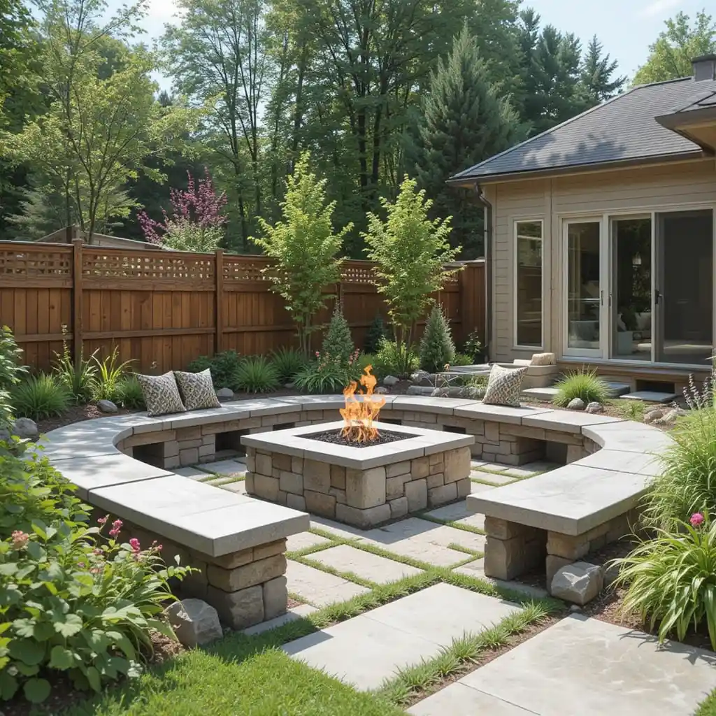 Use stone, concrete, or wood to build permanent bench seating along pathways or fire pits for a functional and modern twist.