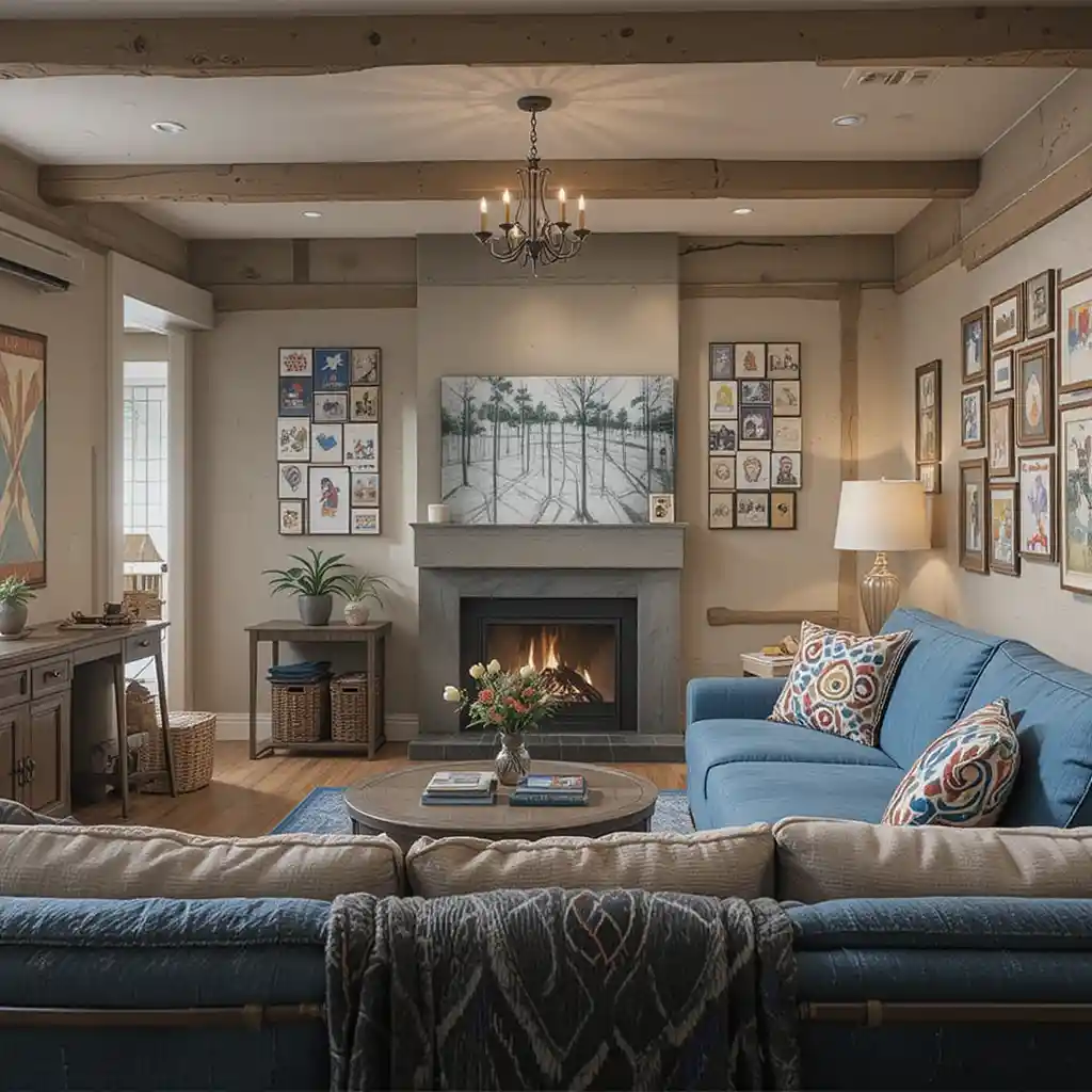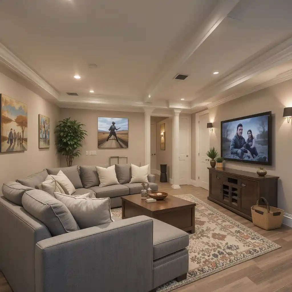 Let kids showcase their artwork or family photos on one wall. This personal touch makes the space feel like it belongs to the whole family. Basement Family Room Ideas