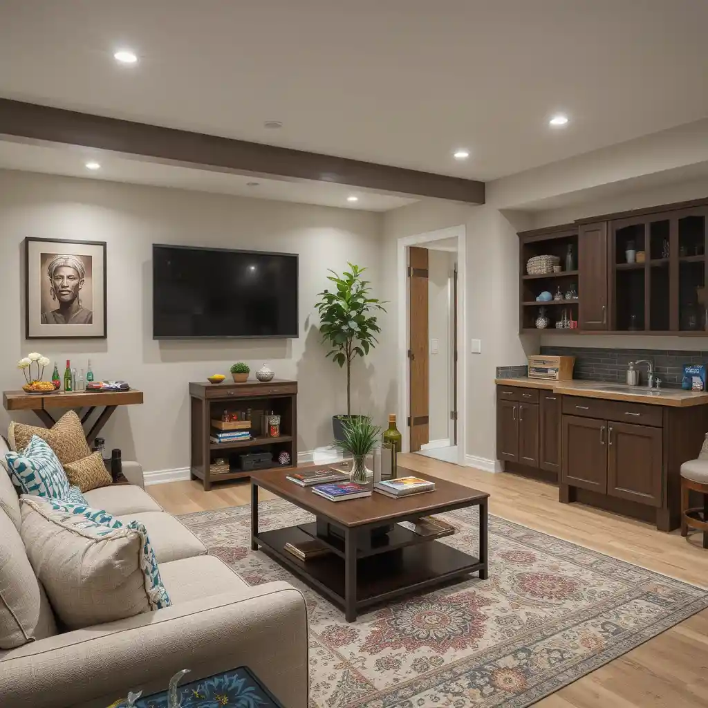 Add soundproof insulation, acoustic panels, or heavy curtains to minimize noise. This keeps the basement quieter and more enjoyable for relaxing or watching TV.