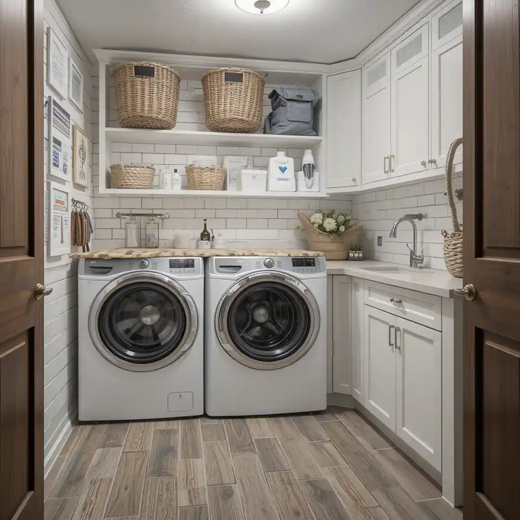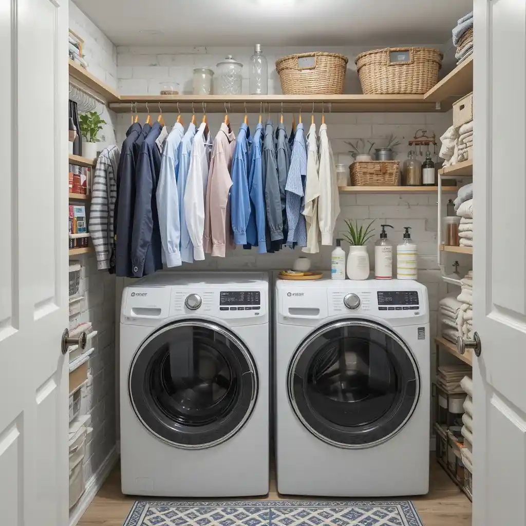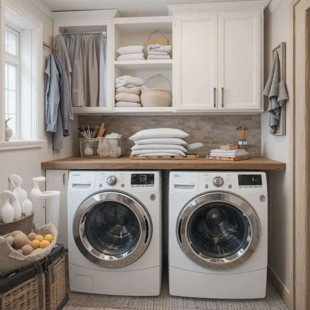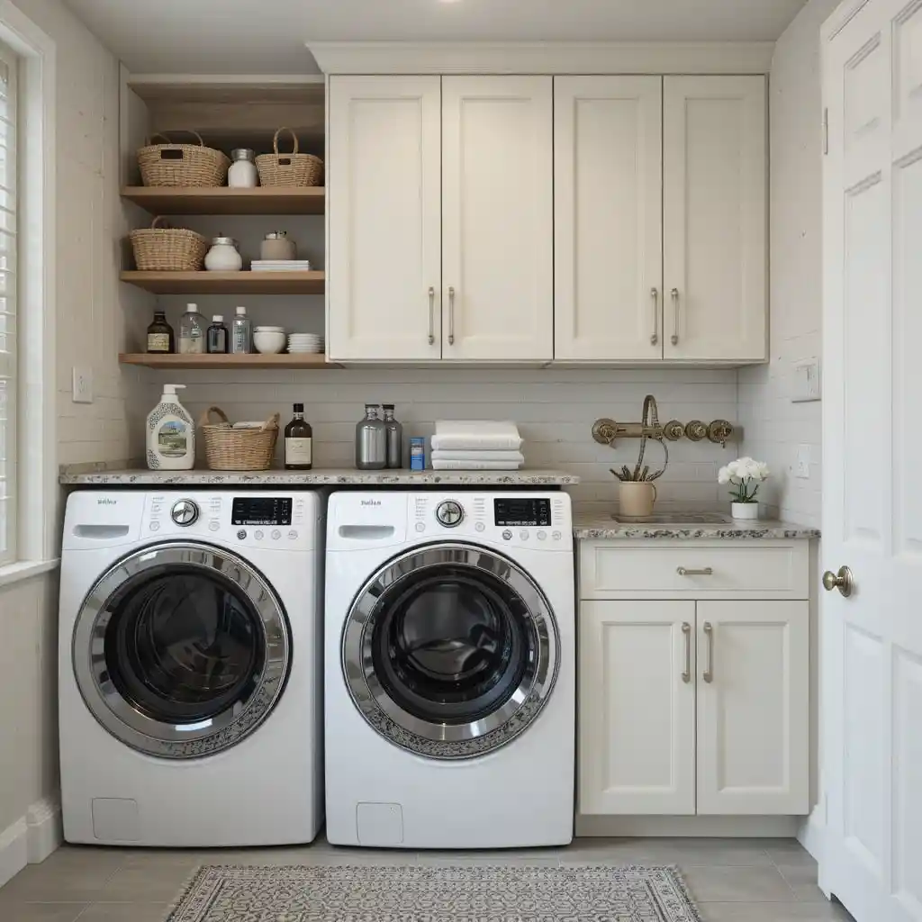 If space is limited, opt for stackable washer and dryer units to free up valuable floor space for additional storage or counter areas.