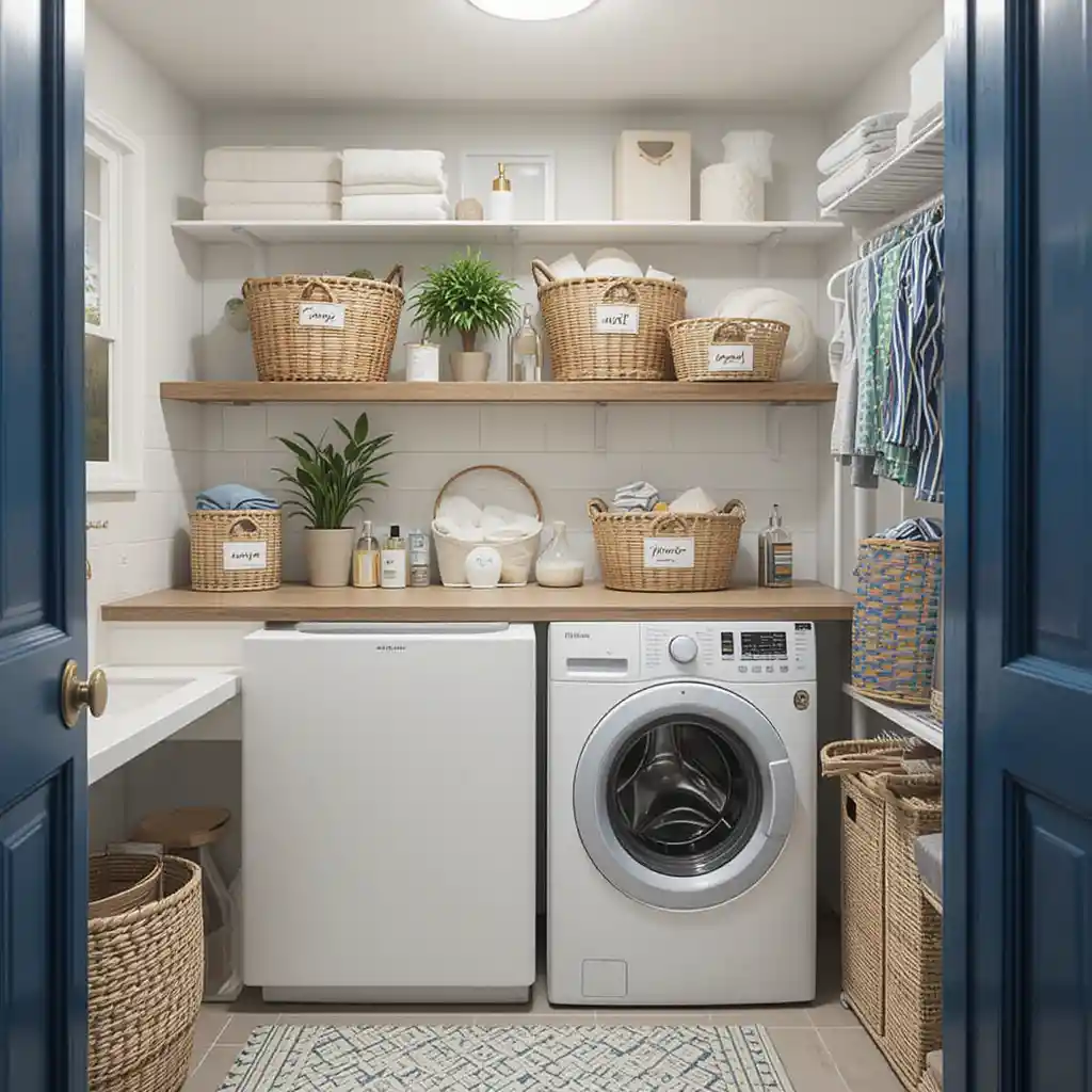 Use separate hampers or cubbies for whites, colors, and towels to make sorting easier and more efficient.