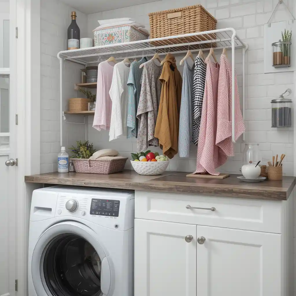 Install a tension rod or wall-mounted bar to hang freshly ironed shirts or air-dry delicate garments right out of the wash.