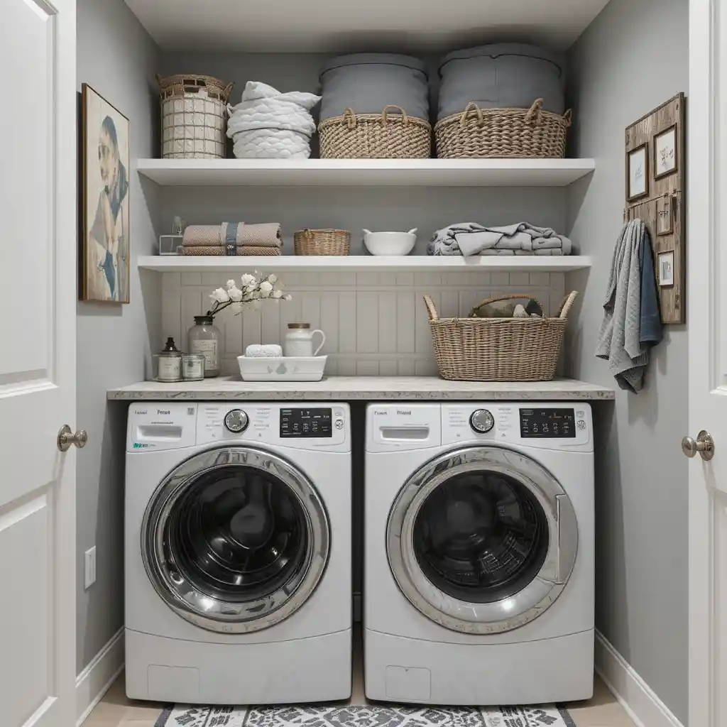 If space is tight, consider tucking the washer and dryer behind sliding or bifold closet doors to keep everything hidden when not in use.