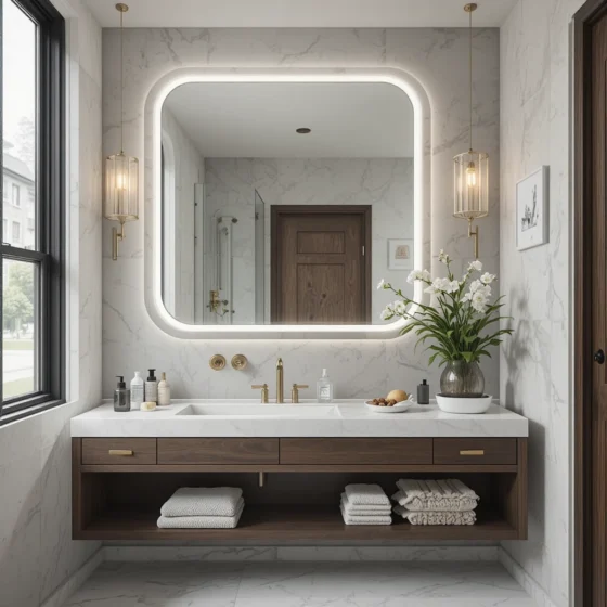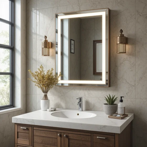 When selecting a mirror, think about your bathroom’s size, lighting, and overall design theme. Frameless mirrors suit minimalist homes, while gold or wood frames add warmth and charm. Also, ensure your mirror size complements your vanity — it should never feel too small or oversized for the space.