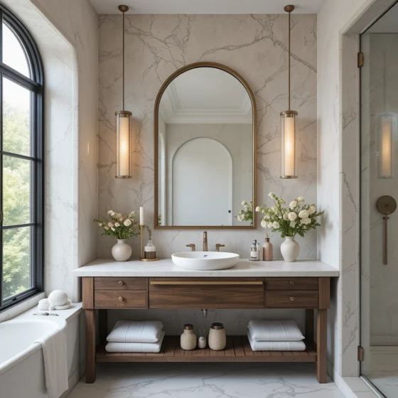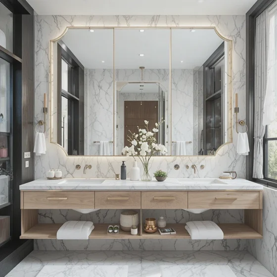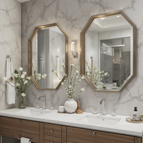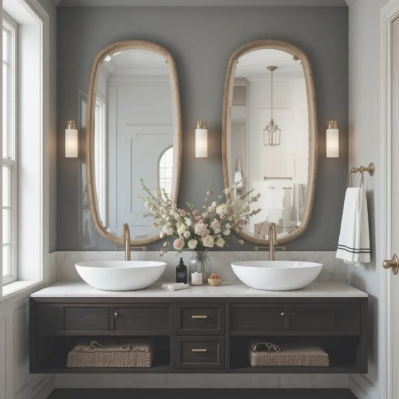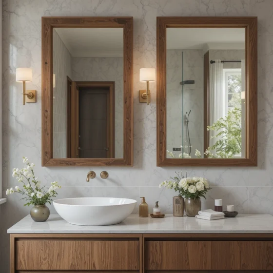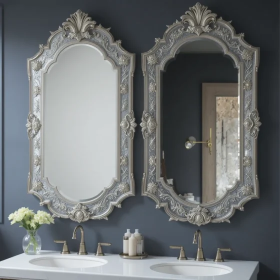 If you have a double sink, using two identical mirrors offers symmetry and structure. This design keeps your vanity visually balanced and adds a touch of luxury.