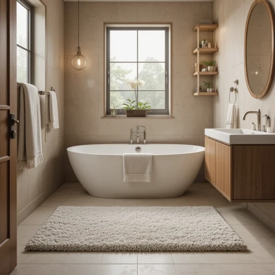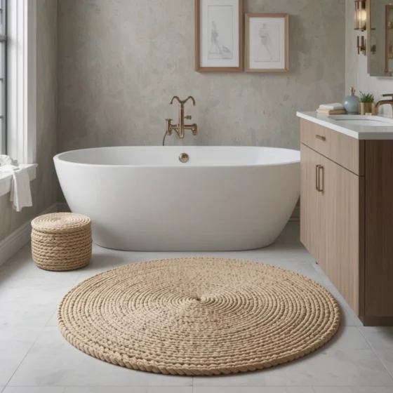 Round bathroom rugs add a unique visual twist to compact spaces. They work beautifully in front of vanities or standalone bathtubs. Opt for braided or tufted styles to blend softness with style.