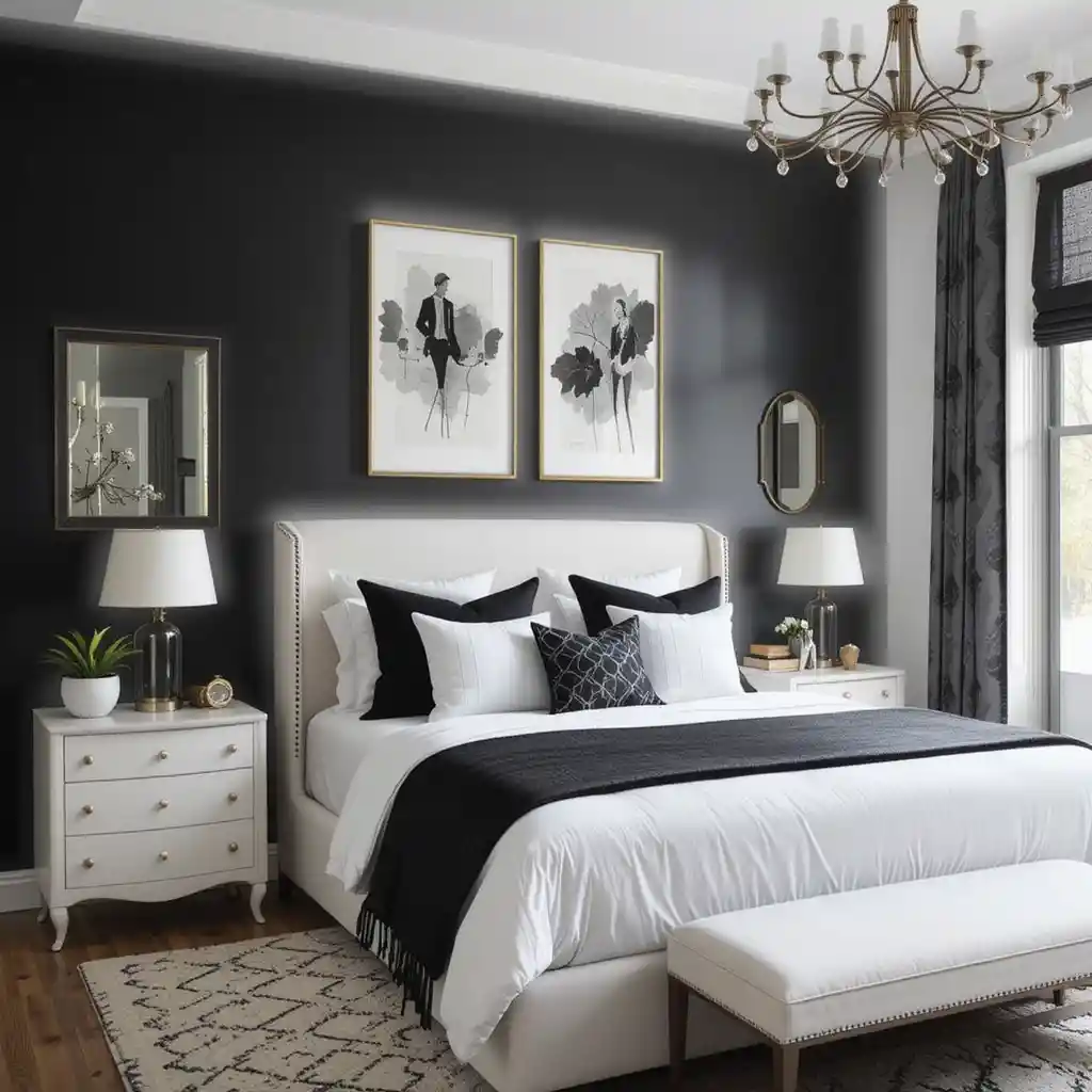 A black and white bedroom feels chic and bold. This classic combination balances modern energy with timeless elegance.