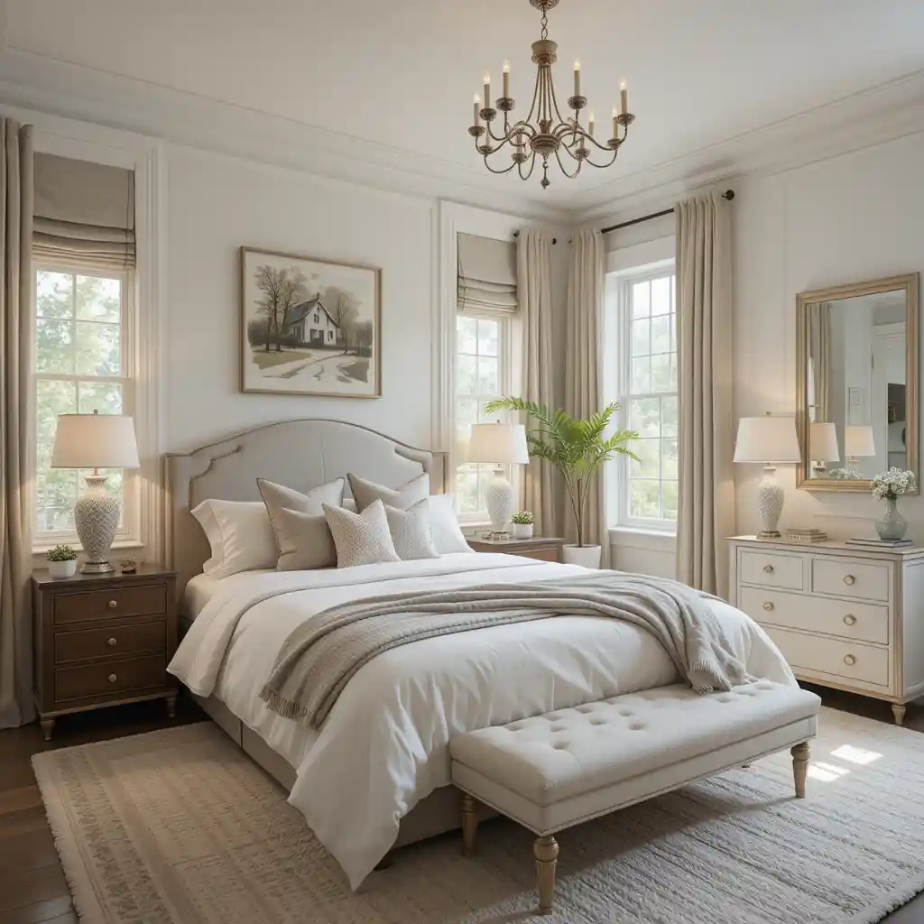 Combining whites, soft grays, and beige creates a minimalist vibe. It’s simple, clean, and enhances a clutter-free lifestyle. Bedroom Color Ideas
