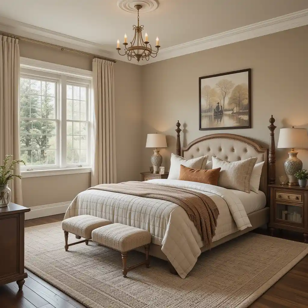 Beige tones make bedrooms feel warm and inviting. This neutral color blends perfectly with wooden furniture and cozy textiles. Bedroom Color Ideas