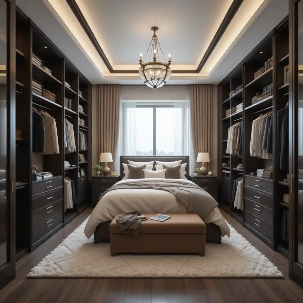 A walk-in closet with organized shelving and lighting adds function and luxury. It makes daily dressing feel like a boutique experience.