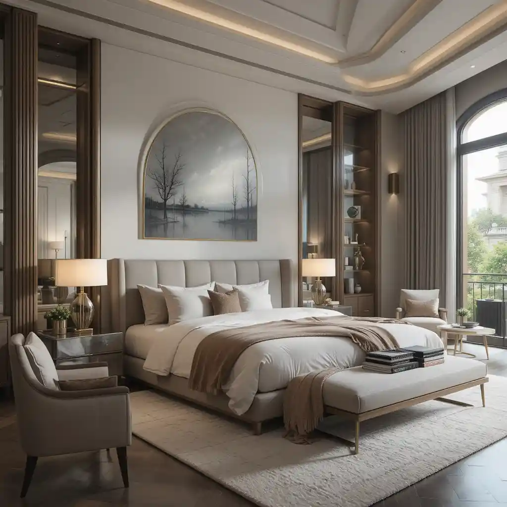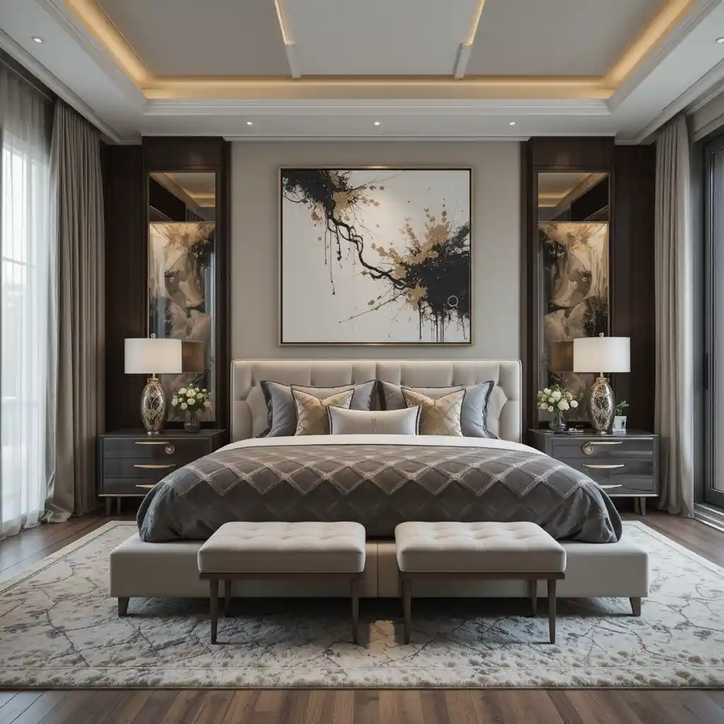 Large art pieces above the bed or along the walls add sophistication. Choose bold, modern, or abstract pieces for impact. Bedroom Master Design Ideas