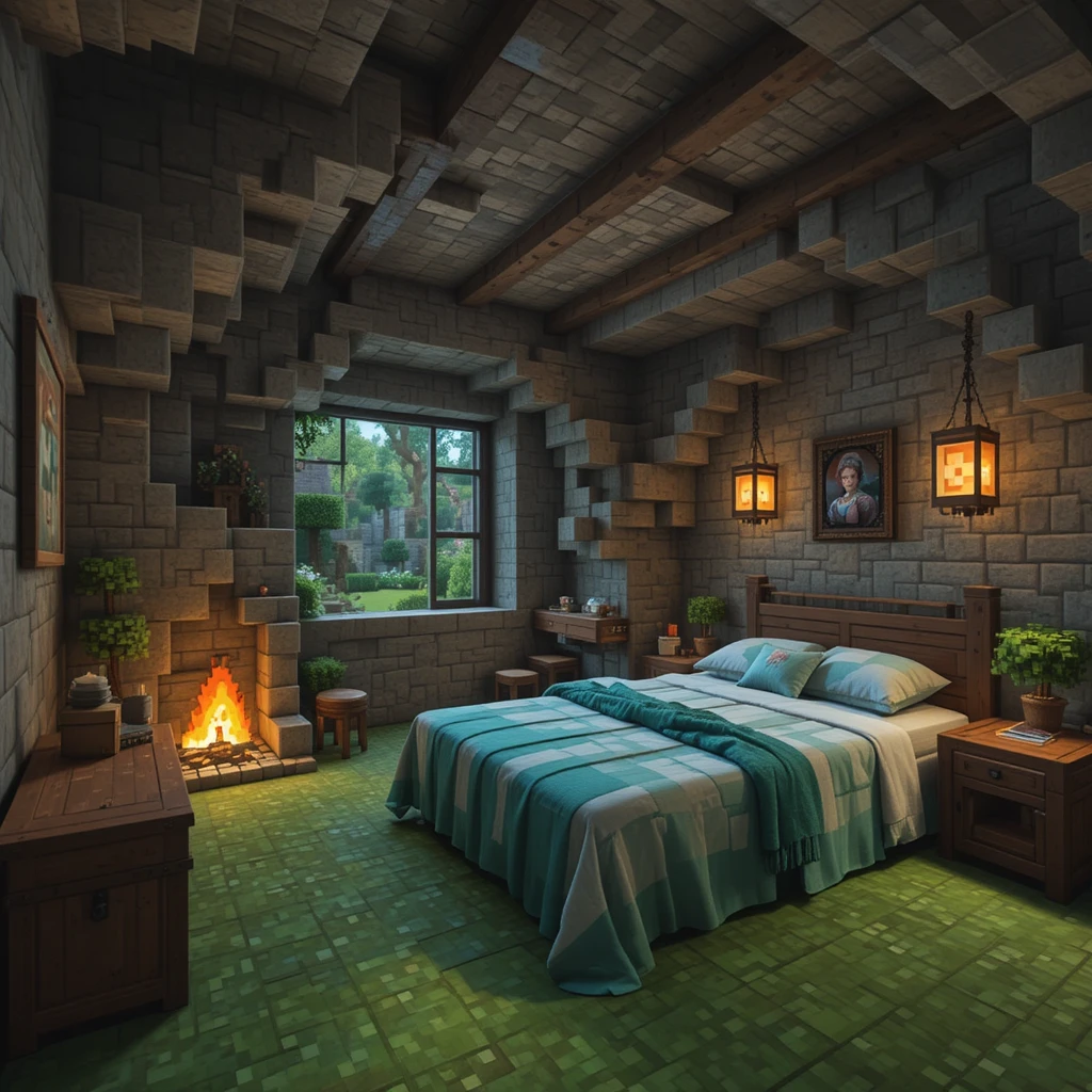Combine moss, wood, and glowing vines to make a magical forest-themed room. Add amethyst crystals and lanterns for sparkle. It’s perfect for players who want a fantasy-inspired hideaway filled with natural beauty.Bedroom Minecraft Ideas